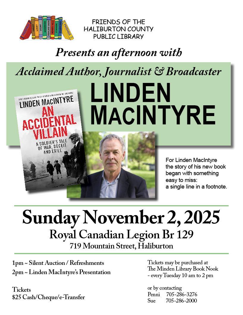 We invite you to attend our annual library fundraiser! Enjoy a fantastic afternoon with author, Linden MacIntyre! We will be serving light refreshments while you enjoy our famous silent auction. Advance