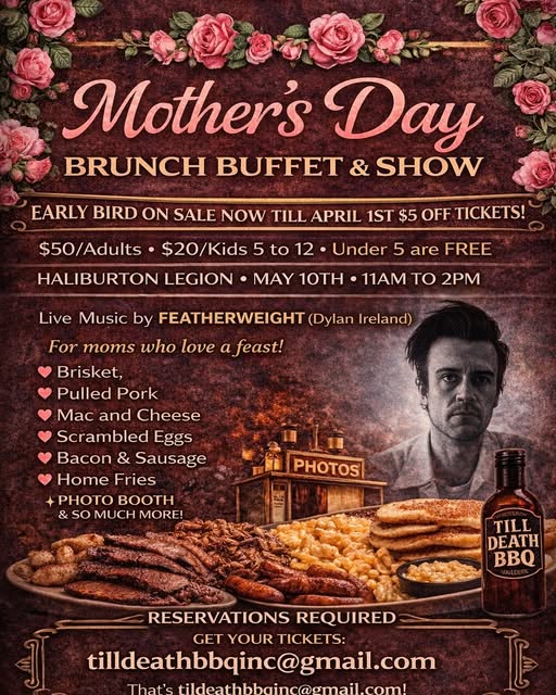 10may11:00 am2:00 pmBrunch Buffet & ShowFood by Till Death BBQ - Live Music by Featherweight