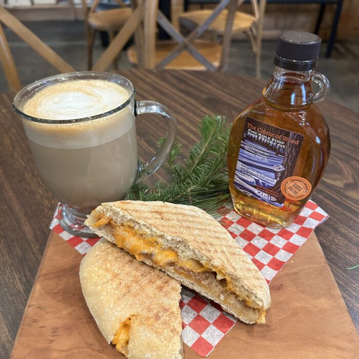 At Abbey Gardens Food Hub, baristas craft maple lattes while the kitchen serves a savoury maple bacon jam grilled cheese layered with rich cheddar and house-made jam on fresh ciabatta. Sweet or savoury, maple shines either way.