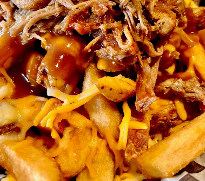 For hearty comfort, the Dominion Hotel’s maple pulled pork poutine stacks crispy fries with pub cheese, smoky pork, maple barbecue sauce, and crunchy onion straws.